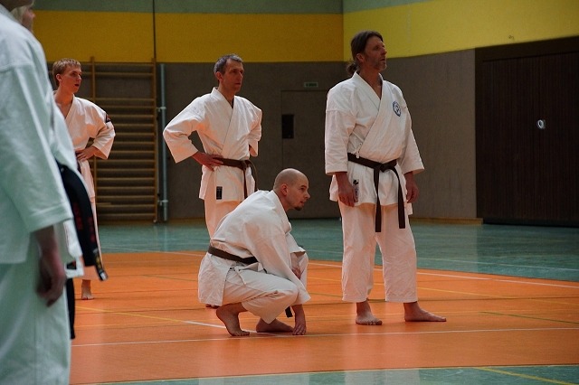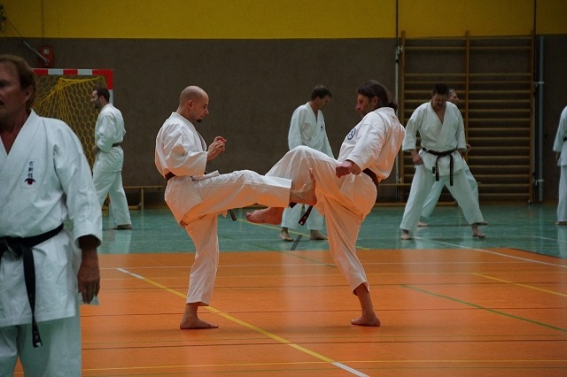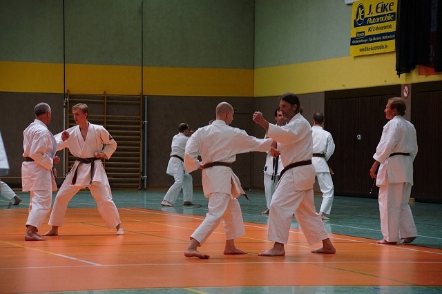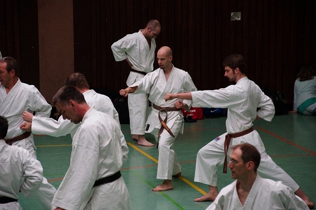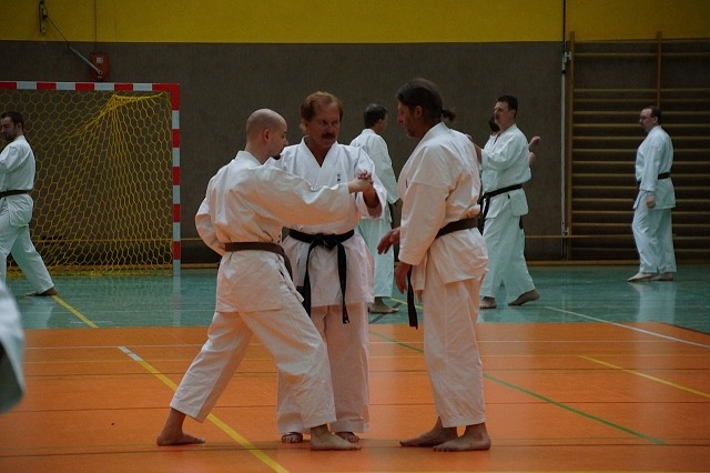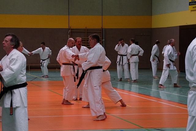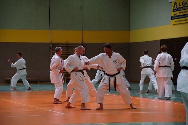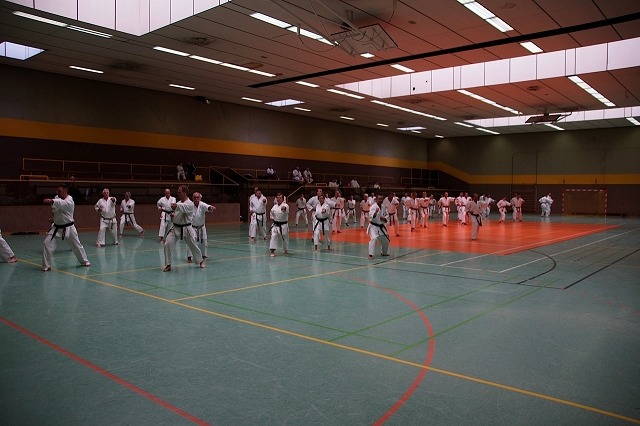 Dan-Vorbereitungslehrgang in Giesen mit D. Mansky 8. Dan. Unter anderem auf dem Programm: Empi-Bunkai.