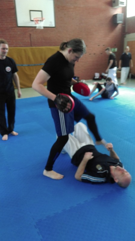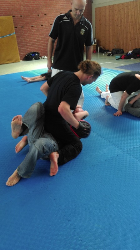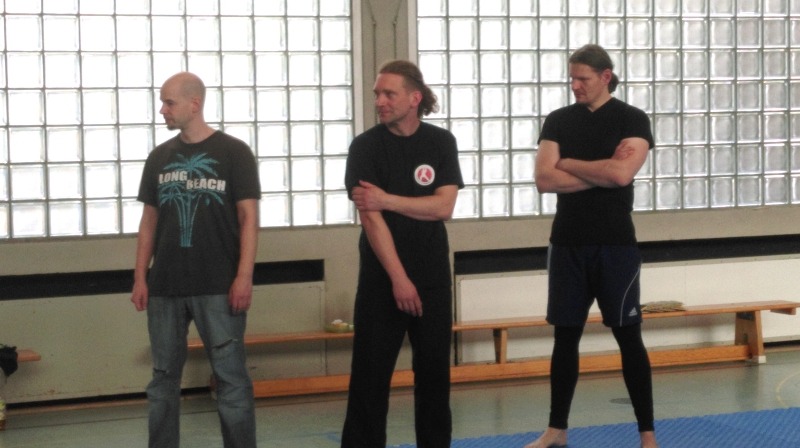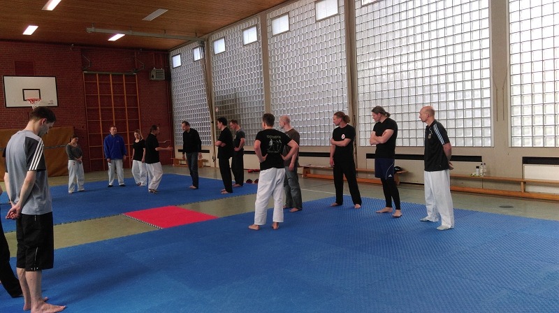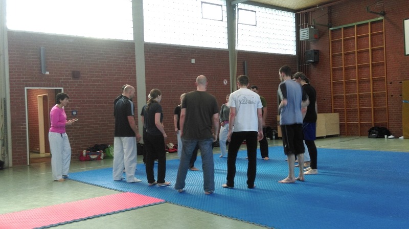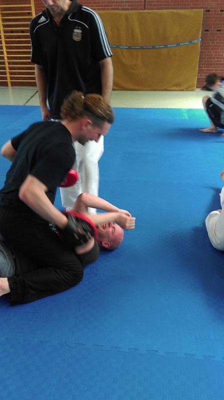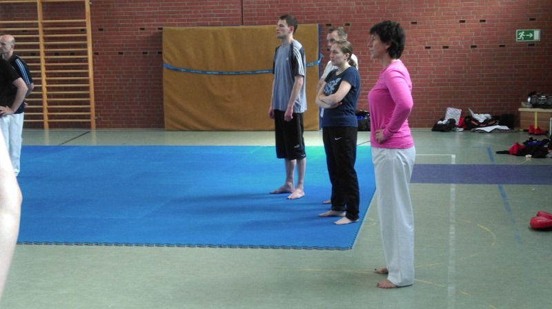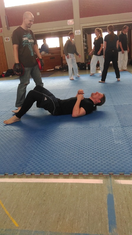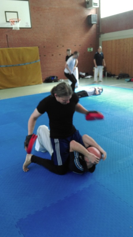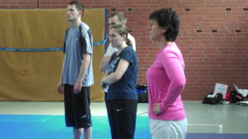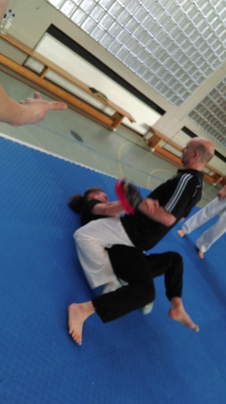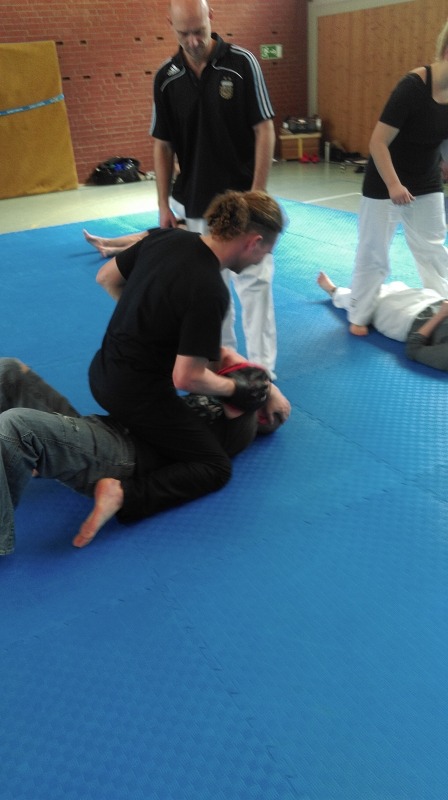 In Verden besuchten vier Karateka am Samstag einen SV Kurs zum Thema Bodenkampf bei Ulrike Maaß und Sven Burkard. Beide sind im Ausbilderteam für den DKV-SV-Lehrer-Bereich. Der Lehrgang erstreckte sich über sieben Stunden – und da sich alles nur am Boden abspielte, waren alle Teilnehmer körperlich wie auch konditionell an ihre Grenzen gegangen. Das Sonntagslauftraining wurde dennoch durchgeführt, jedoch – zugegebenermaßen – in einem „bedächtigeren“ Tempo als üblich… 😉