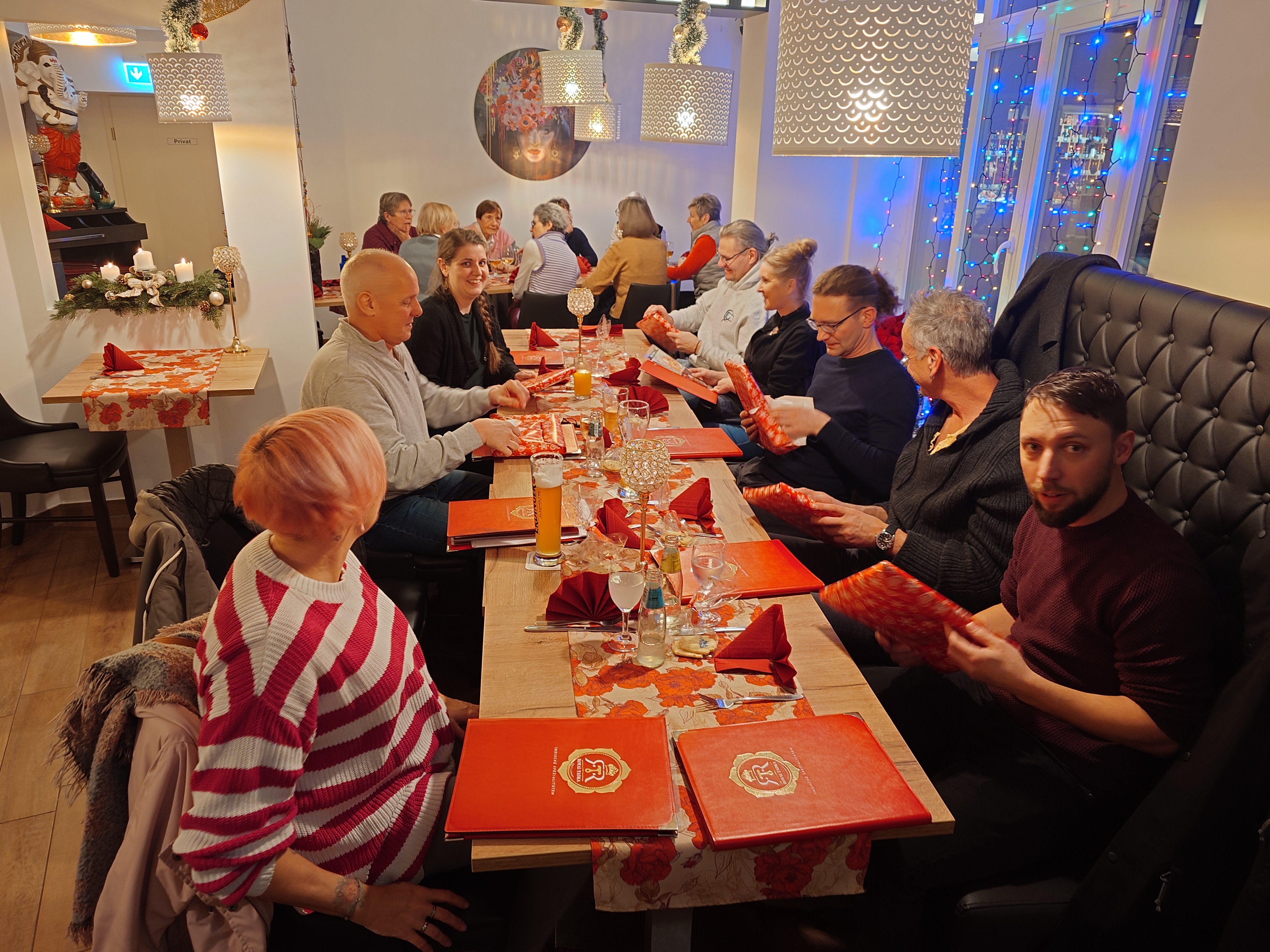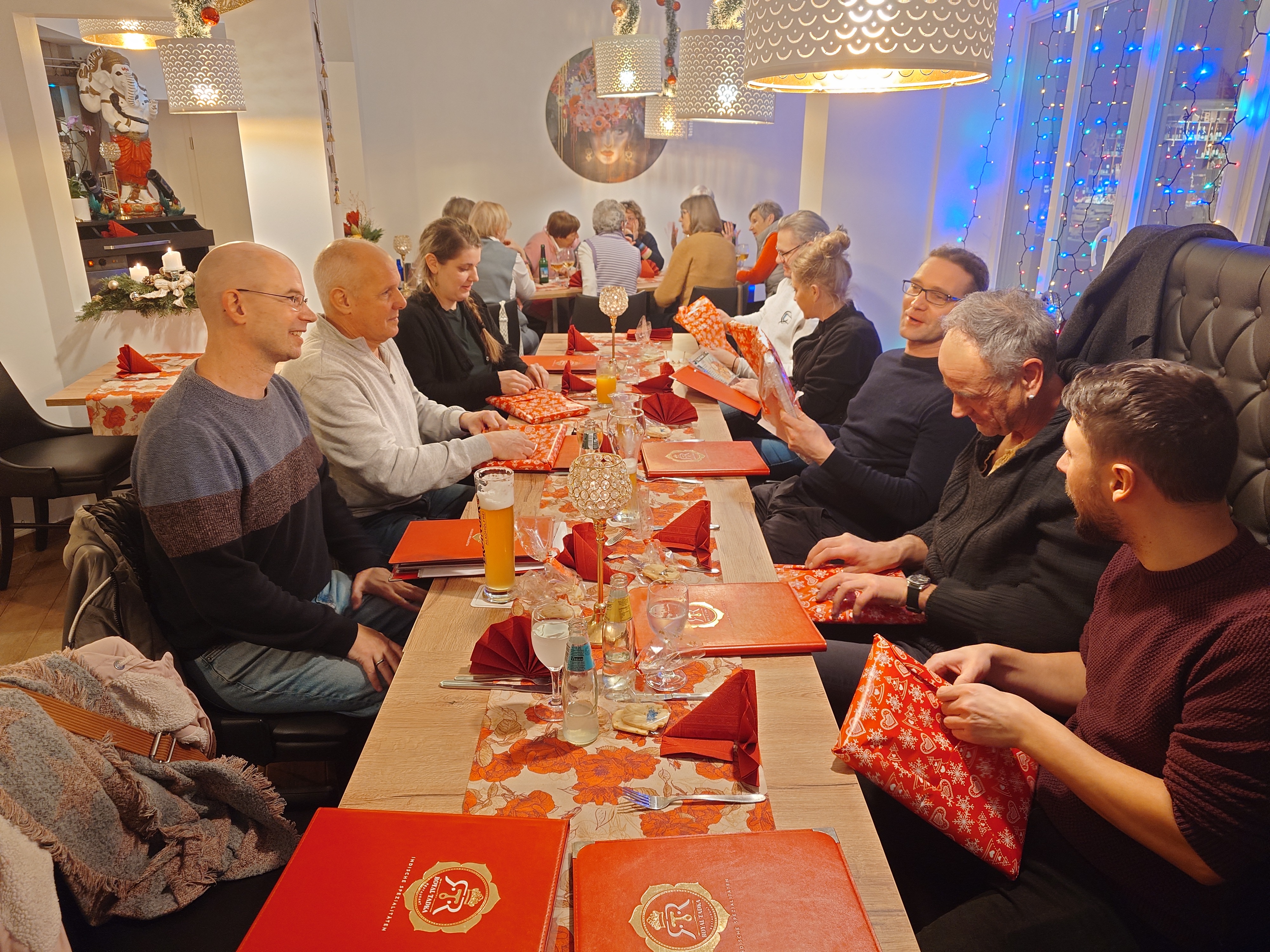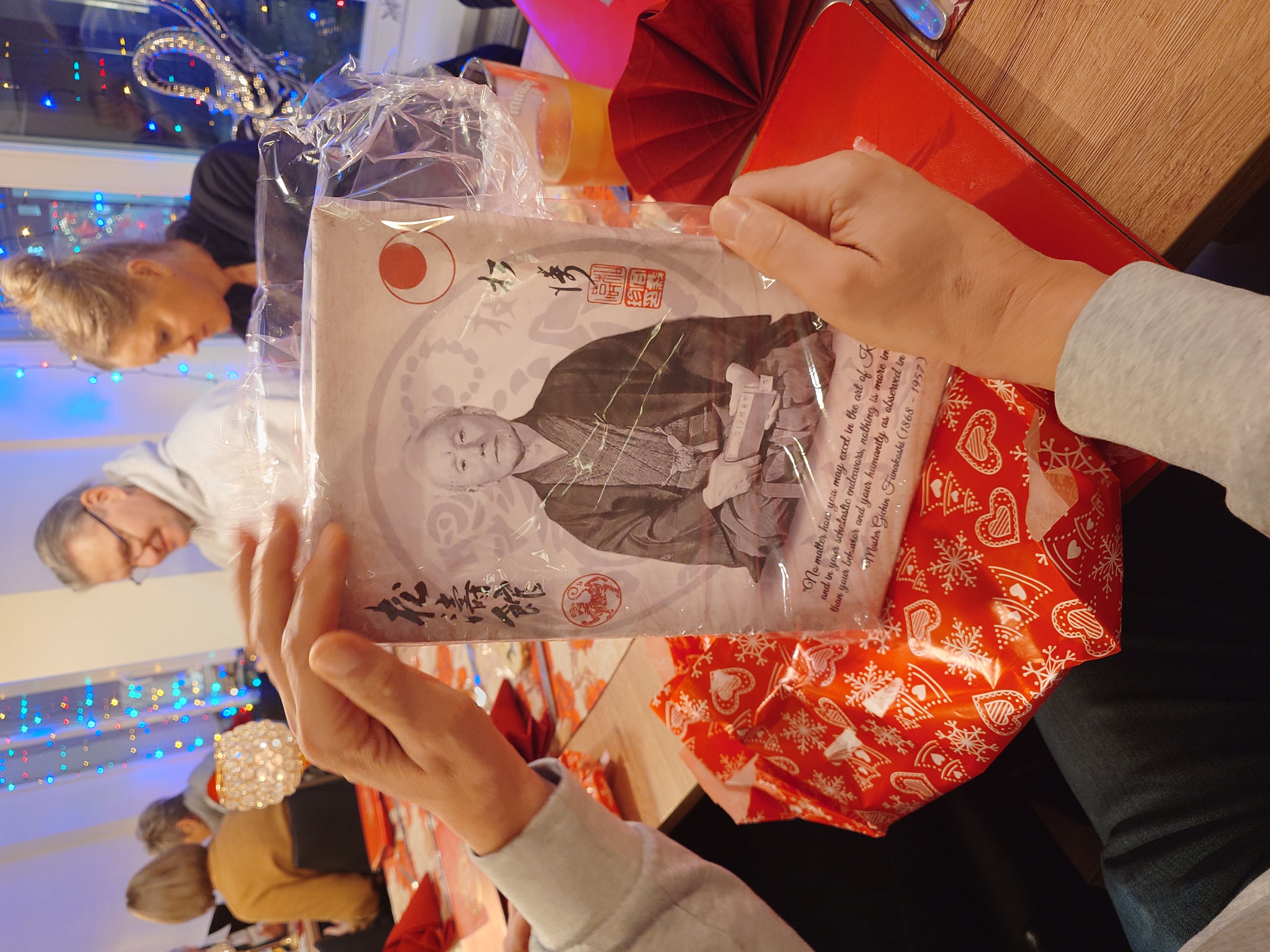 Unsere Weihnachtsfeier hielten wir im gemütlichen Royal Tadka in Gehrden ab. Bei leckerem Essen hatte der Weihnachtsmann noch ein Portrait von Gichin Funakoshi dabei. Darauf erinnert er uns, dass Karate mehr als nur ein „Sport“ ist. Karate ist eine Lebensphilosophie, deren Maxime die Entwicklung des Karateka selbst ist. Achtsamkeit und Mitgefühl für uns selbst und andere sollte unser zentraler Fokus im Leben sein.
