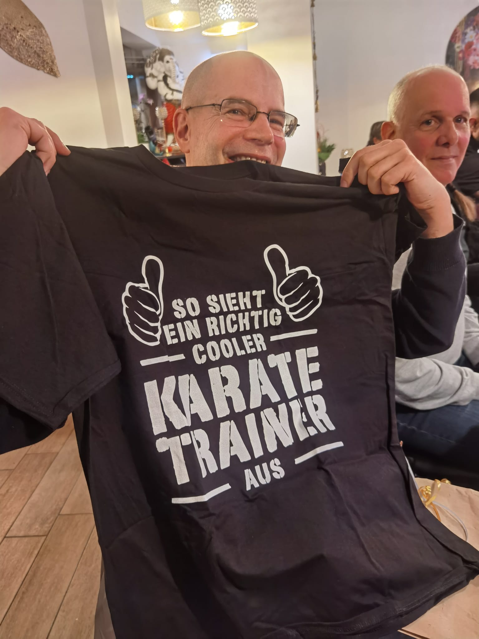 Der Trainer wurde außerdem noch mit einem besonderen T-Shirt ausgezeichnet, dass er mit Stolz tragen wird.